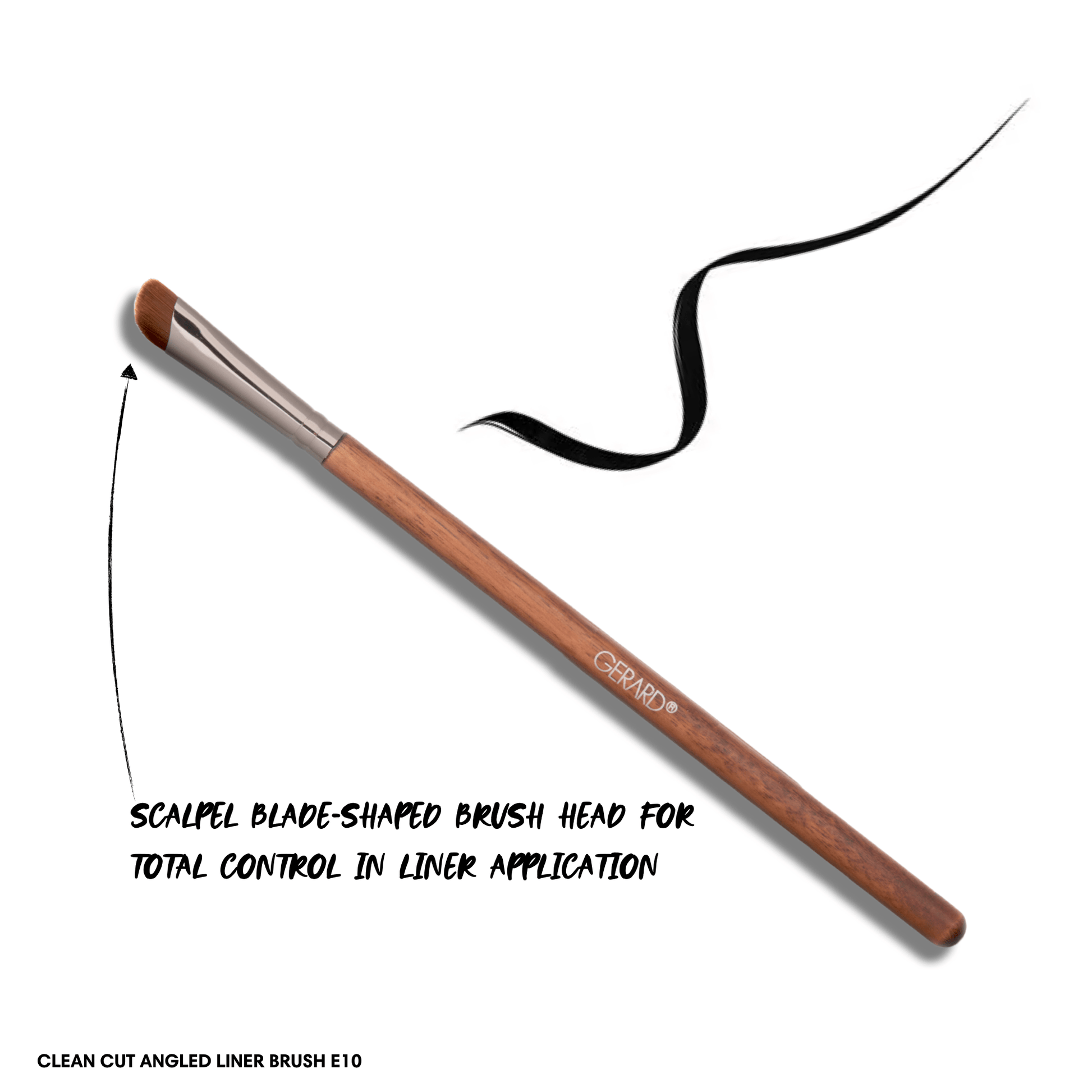 An innovative scalpel blade-shaped brush head allows for total control in liner application. Creating winged liner and tight-lining is now a dream, thanks to the ergonomic bristle design. A simple quick flick of the brush creates the instant winged liner. This pro artist favorite is the ultimate multitasker with liquid, powder and cream formulas. Truly a brush like no other.